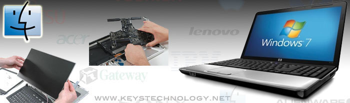 Keys Technology specializes in Laptop Repair on a variety of makes models. Our technical staff understand the issues that occur with individual machines in the various laptop product lines and offer superb service work. We will fix damaged or faulty laptops, and a short conversation with one of our service technicians will allow you to find the lowest cost way to service your laptop. We are committed to the highest quality laptop repair service provided to you at an affordable flat rate. We seek to build long-term relationships with our clients and promise each customer first rate laptop repair service on all major laptop models including - Acer, Apple, Asus, Alienware, Dell, Gateway, HP, Lenovo, Sony, Toshiba, Fujitsu, EMachines and more...